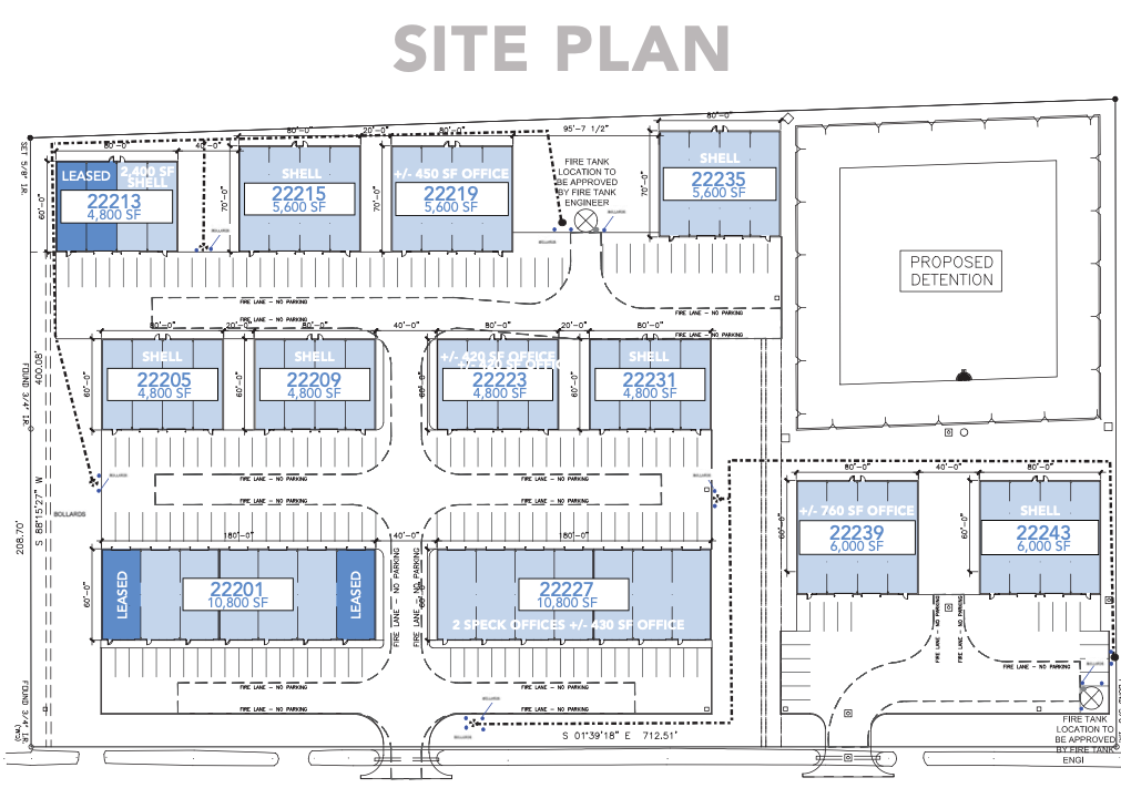 • 12 Building Development • Bay Doors: 12’x12’ • Eaves Height: 14’6” • Lease sizes ranging from 1,542 SF – 10,800 SF • Park Details • Business Park Setting • Flexible Lease Terms • Conveniently located just minutes from 2920 and the Grand Parkway