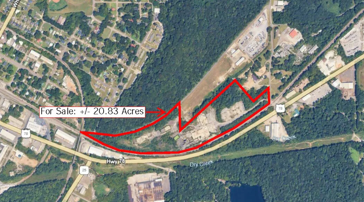 Industrial Development Opportunity – ±20.83 Acres with Existing Infrastructure This ±20.83-acre site presents a prime opportunity for redevelopment or new industrial use. Formerly a manufacturing facility, the property offers substantial existing infrastructure to accelerate project timelines. Key Features: • ±20.83 acres of land • Existing concrete slabs and site infrastructure in place • On-site power with transformers • Usable silos remain on site • Adjacent to Norfolk Southern rail line with potential for rail spur access • Excellent connectivity to I-20, with easy access to both eastbound and westbound routes Ideal for manufacturing, warehousing, or industrial redevelopment, this site combines location, infrastructure, and rail proximity to support a wide range of industrial uses.