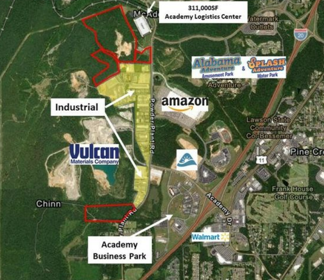 Industrial development land is available in Bessemer, Alabama, conveniently located just off I-59/20 at Exit 108 and directly adjacent to an Amazon facility. The offering includes approximately 170 total acres, with parcels ranging from about 3 to 87 acres, providing flexible options for a variety of development needs. Pricing varies by parcel, with subdivision available, and interested parties are encouraged to call to discuss details and opportunities.