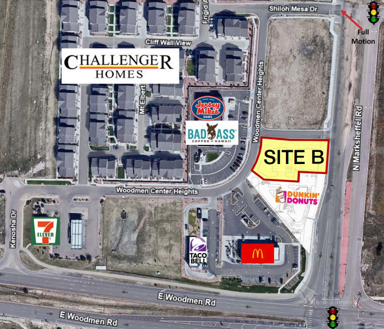 This property offers prominent frontage along E Woodmen Road and Marksheffel Road, providing excellent visibility and easy access from both major arterial roads. Zoned PUD, the site allows a wide range of uses, including drive-thru, automotive, medical, and retail concepts. It is situated alongside established tenants such as Dunkin’, Taco Bell, McDonald’s, and 7-Eleven, benefiting from strong traffic and proven retail demand.