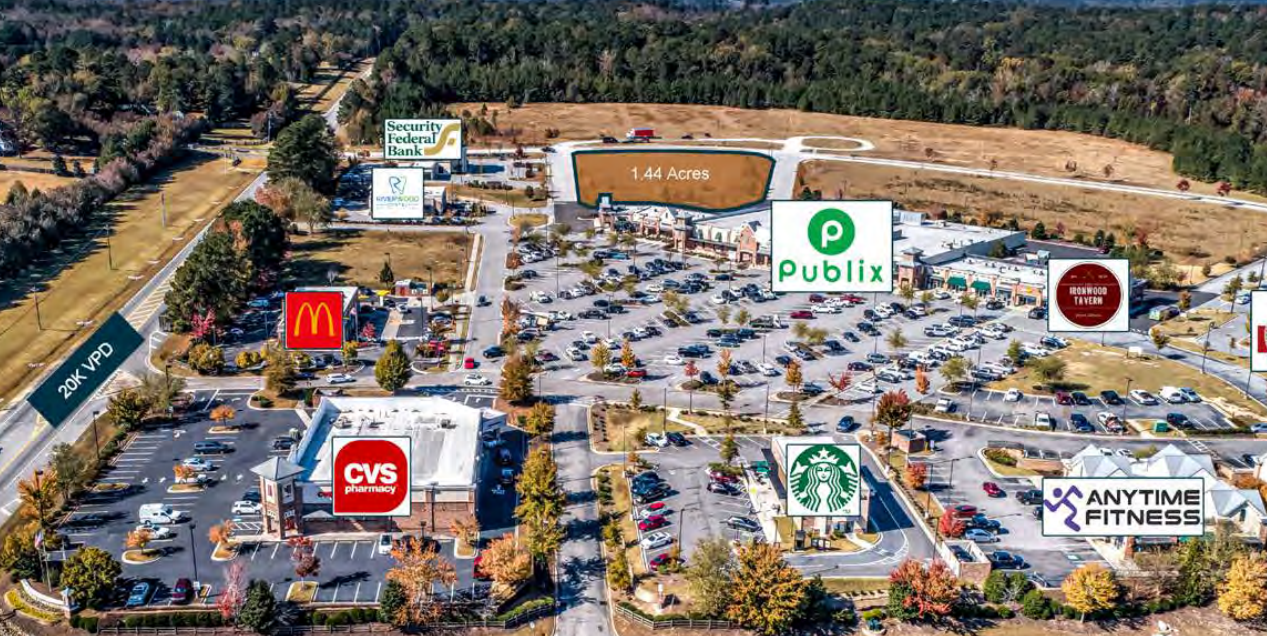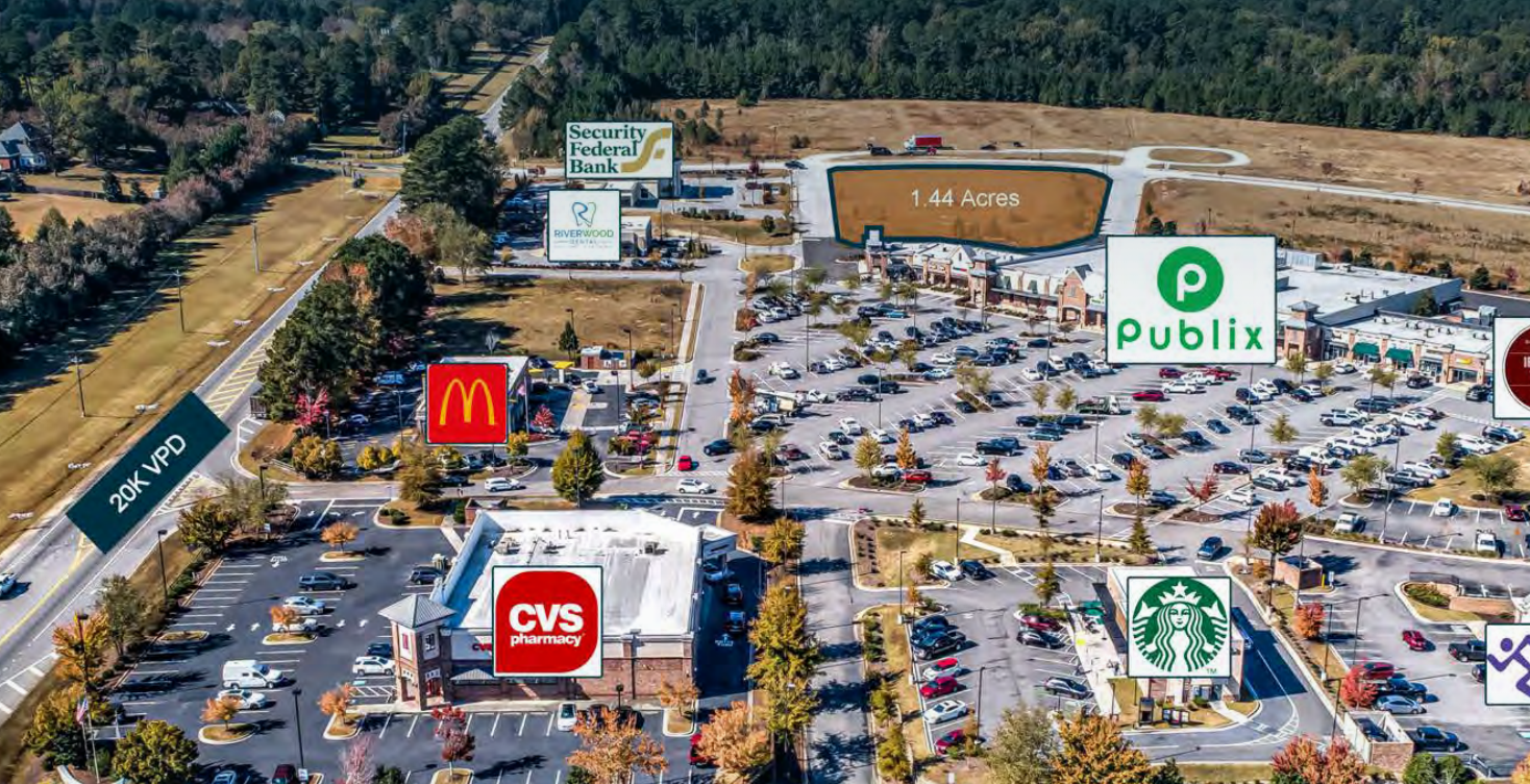 The Finem Group at Meybohm Commercial is proud to exclusively present this prime 1.44-acre commercial land parcel for sale in Evans, Georgia. Situated as a second-row retail pad within Riverwood Town Center and directly aligned with Publix, the center attracts 1.9 million annual visitors, ranking in the 89th percentile nationally for neighborhood centers according to Placer AI. The property benefits from strong demographics, including a median household income of $119K and a population of 23,000 within a three-mile radius, and is zoned PUD (Planned Urban Development) with utilities on site. Positioned along Washington Road (29,000 VPD) and near William Few Parkway (15,000 VPD), the site offers excellent visibility and access, making it ideal for a single-tenant retail development or a multi-tenant strip center. Riverwood Town Center features a strong national tenant mix, including Publix, McDonald’s, Starbucks, CVS, Parker’s Kitchen, and Papa John’s, and serves an affluent and consistent customer base. The property is located in one of the most desirable areas within the Central Savannah River Area (CSRA), providing retailers a prime opportunity to fill a market gap or establish a new presence. Nearby amenities include Greenbrier High School, Middle School, and Elementary School, with a combined 3,200 students, as well as numerous affluent residential neighborhoods. With limited retail competition within a four-mile radius, this site offers a rare opportunity to capture a high-performing trade area in Evans, GA.