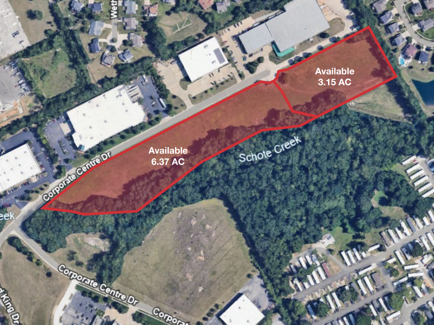 Two parcels totaling 9.52 acres—measuring 3.15 and 6.37 acres—are available for purchase either individually or as a combined offering. The site is zoned “HTCD” (High Tech Corridor District) and is situated within the O’Fallon Corporate Centre Business Park. Utilities are readily available to the property, supporting a range of potential development opportunities.