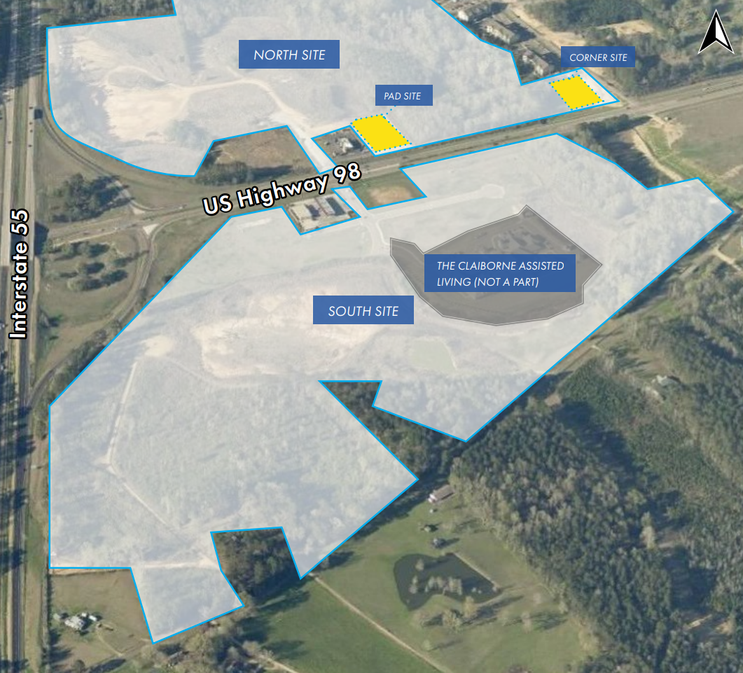 This 185+ acre, master-planned mixed-use development is located within an Opportunity Zone and is available either as a full site for a master developer or as individual parcels for end users. Positioned at the gateway to McComb, Mississippi along Interstate 55, the property offers excellent visibility and high traffic counts, making it well-suited for future retail, office, hospitality, residential, and specialty developments. Parcels are available for sale, ground lease, or build-to-suit opportunities.