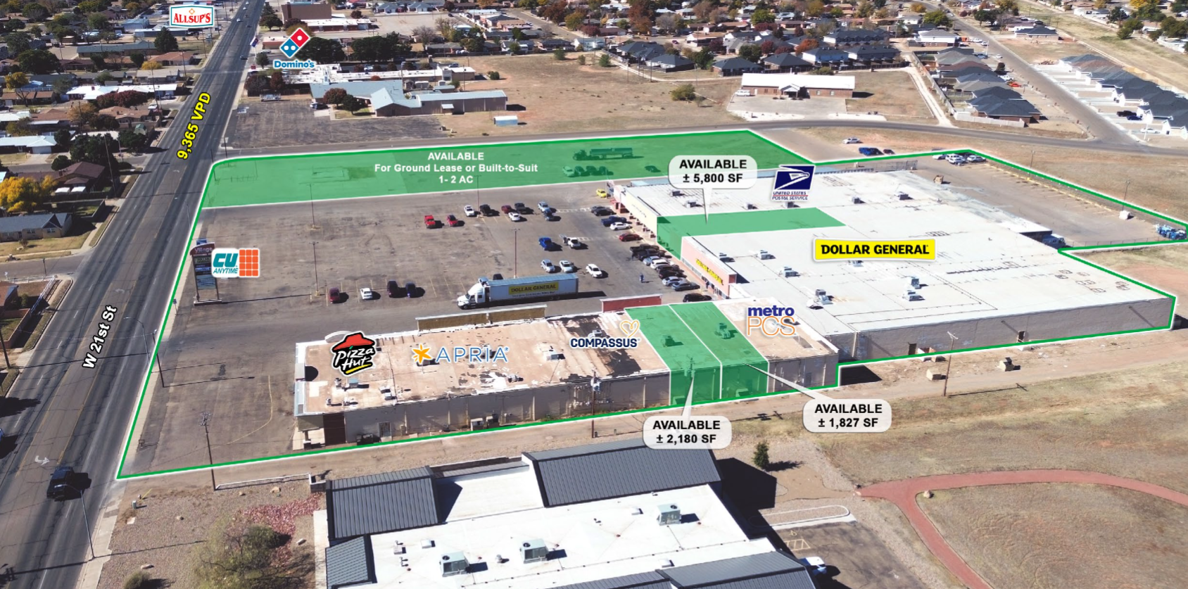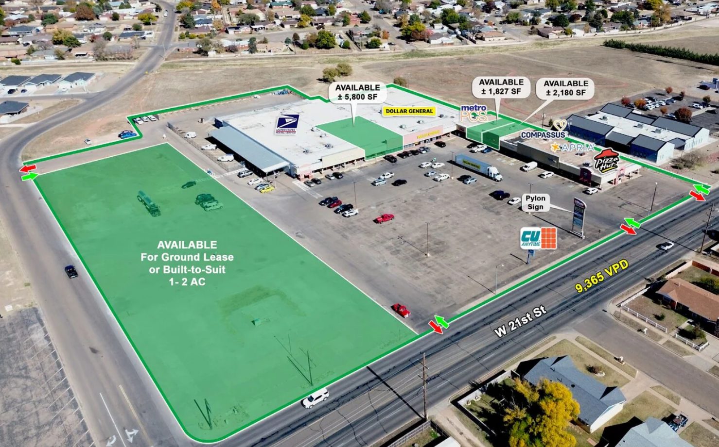 This retail pad offers an excellent opportunity for QSR and drive-thru concepts, medical or financial offices, retail showrooms, or boutique service users seeking a standalone identity within a high-traffic infill location. The site provides separate pylon and building signage, direct access to the shopping center’s primary drive aisles, and convenient parking fields. Available for ground lease or build-to-suit, the pad can accommodate users on up to two acres and benefits from consistent daily traffic generated by Clovis High School, Plains Regional Medical Center, and the strong co-tenancy within the surrounding retail center.