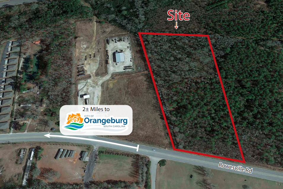 •±11.6 acres of industrial land available near Orangeburg, SC •Situated across Hwy 21 from Orangeburg Municipal Airport and Orangeburg County Industrial Park •Zoned BI (Business Industrial) in Orangeburg County •±420 feet of road frontage along Hwy 21 (Rowesville Rd) •Water and sewer service available via Orangeburg Department of Public Utilities •Approximately 8 miles to I-26 and under 25 miles to I-95 •Asking Price: $232,000