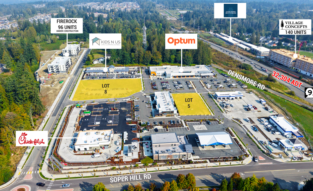 Soper Hill Center – 15-Acre Commercial Land Development, Marysville, WA . Prime 15-acre commercial parcel located on SR 9 near the intersection of SR 92, just minutes from Frontier Village in Lake Stevens and serving Marysville, Lake Stevens, and Granite Falls. Zoned Community Business, the site supports a wide range of commercial uses, including retail and medical. The area has experienced rapid growth, with the population quintupling since 2000, driving strong demand for retail and medical services. A new 37-acre Costco is proposed just three miles south on SR 9. With high visibility, easy access, flexible zoning, and a variety of lot sizes, Soper Hill Center is ideal for meeting the region’s commercial and medical needs. *Broker to verify commission with listing agent when submitting an offer.