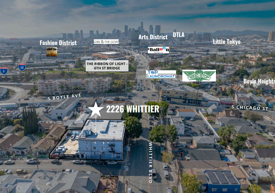 This character-rich property features exposed brick and abundant natural light from skylights, offering a unique and inviting interior. Currently leased below market rent, the property presents significant upside potential. Located on high-traffic Whittier Boulevard, it benefits from strong visibility and foot traffic, just minutes from Downtown LA, the Arts District, and Little Tokyo. The site includes onsite parking, providing convenient access for tenants and customers, and easy connectivity to major freeways including I-5, I-10, I-710, and SR-60. The 12,354 SF building comprises three street-level retail units and 18 residential units, generating a gross annual income of $366,803 with a net operating income of $230,363, offering stable cash flow with growth potential. Built in 1913 and zoned LA C2, the property is close to Metro bus routes and the Soto Light Rail Station (E Line/Gold Line), and is surrounded by thriving local businesses, restaurants, and cultural landmarks. This presents an excellent opportunity for investors seeking diverse income streams and long-term appreciation. Additionally, a 3,234 SF unit (2230) is available for lease at $3,350/month MG, suitable for retail, office, or creative use.