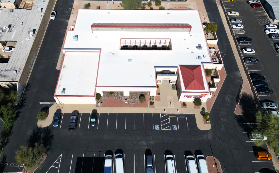 This single-story retail/office property on Tucson’s East side features a small warehouse within a fully fenced and gated lot spanning over one acre, with additional land at the rear for potential expansion. The building’s glass clerestory, courtyards, and extensive interior glass walls and windows bring abundant natural light into every office, while a single roll-up door provides access to the storage area. The space boasts high ceilings, full sprinklers, and air conditioning, and benefits from prominent Broadway signage, making it ideal for an owner-user or business seeking visibility and functional office/warehouse space.