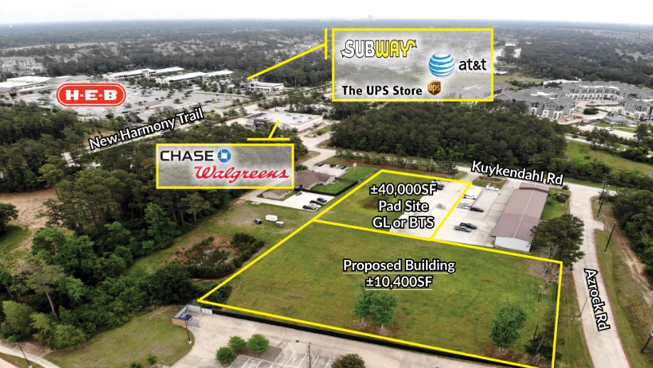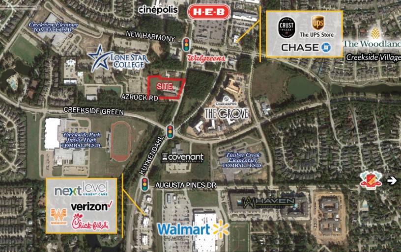 • Unique opportunity in The Woodlands with no zoning restrictions • Surrounded by major amenities including HEB, Walmart, Minneapolis, Chick-fil-A, Whataburger, CVS, First Financial Bank, and numerous dining and retail options • Strategically positioned within the core of The Woodlands Creekside development • Shares location with high-quality tenant, Class A Caliber Auto Care • Lease pricing available upon request through the broker • Build-to-suit options offered; details available upon discussion with the broker