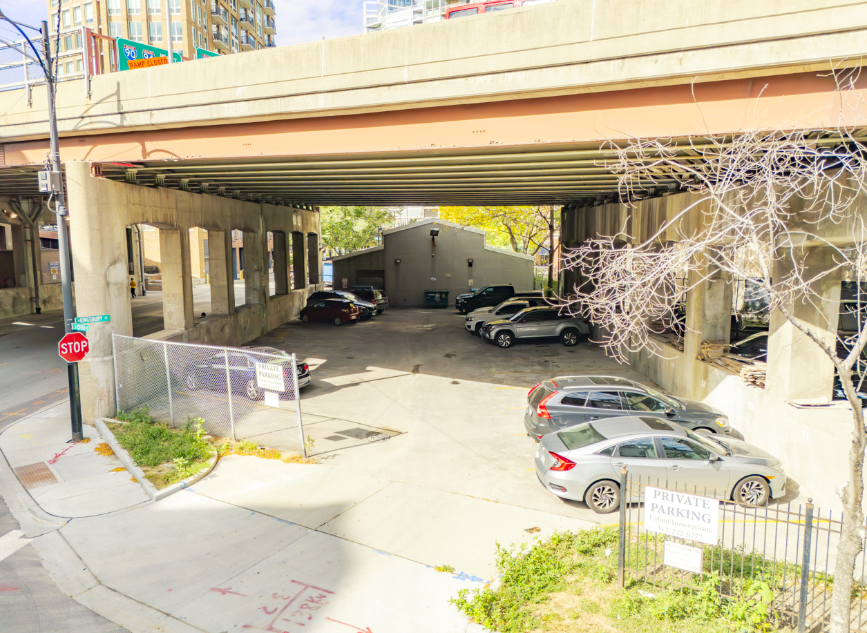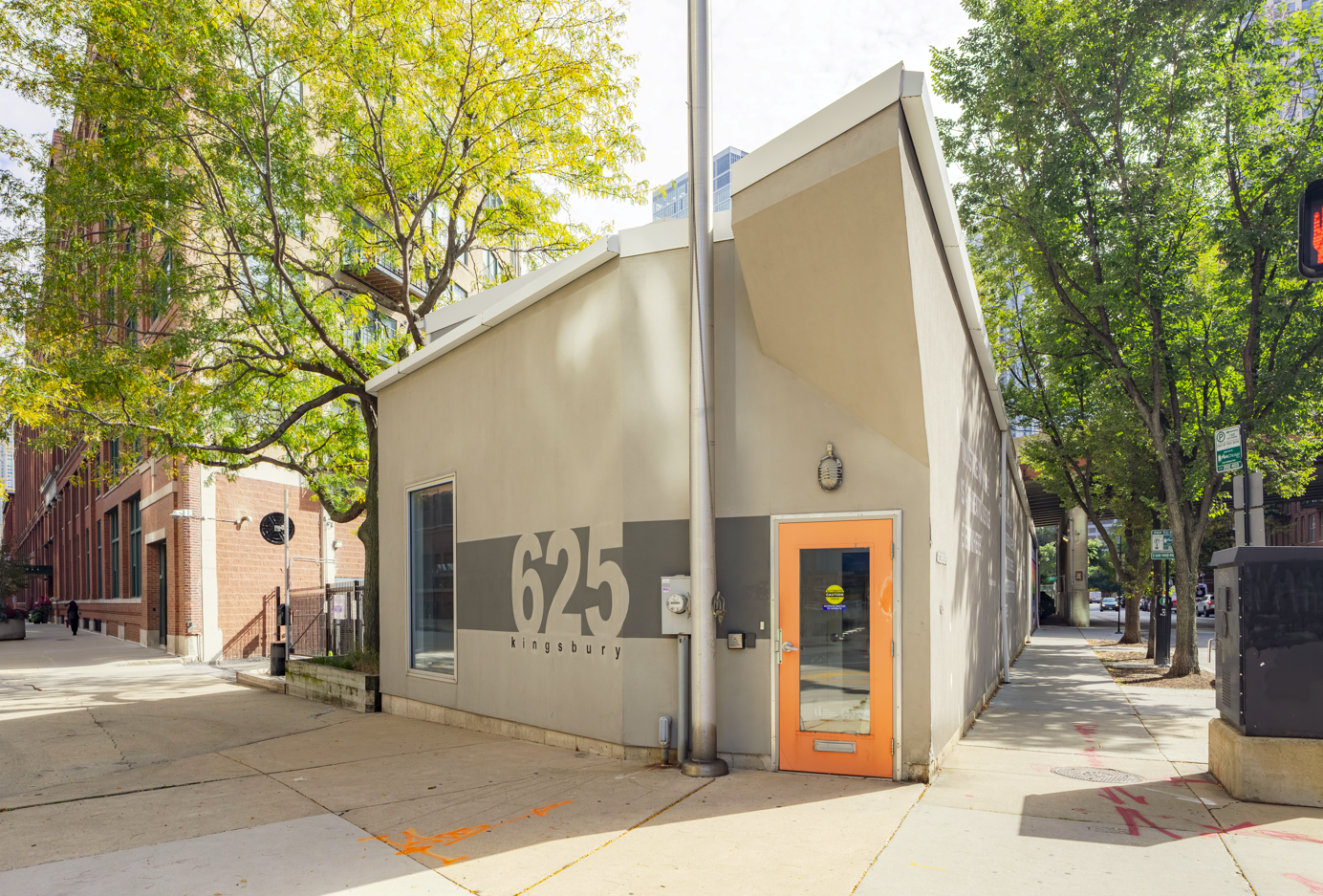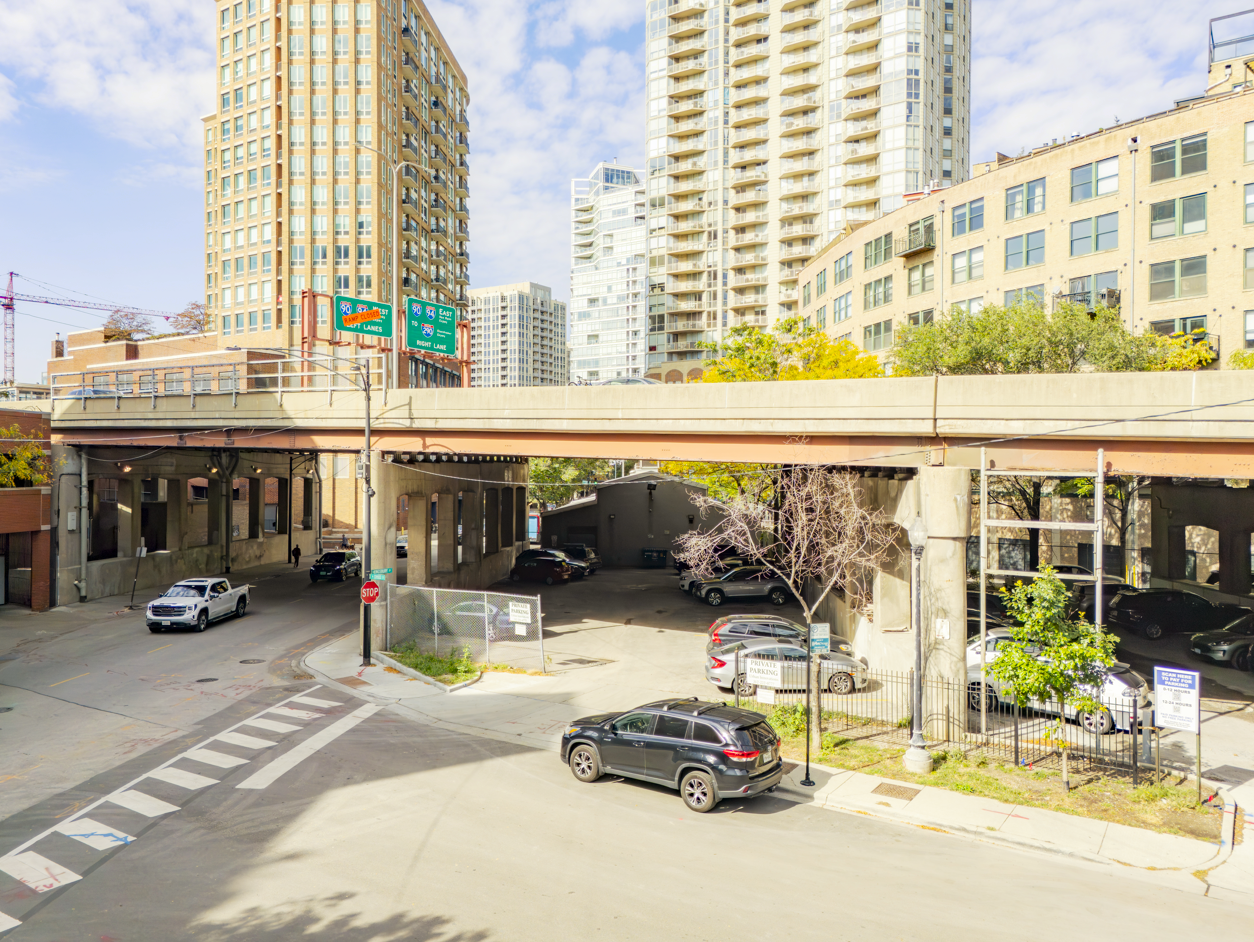 625 N Kingsbury St is a ± 5,370 sq. ft. single-story clear span bldg. on 5,609 sq. ft. of land that can be purchased with or without 430 W Ohio St. 430 W Ohio St is a 24-space striped parking lot on 5,362 sq. ft. of land (10,971 sq. ft. combined land site) underneath I-90/94 Feeder Ramp. 430 W Ohio St will not be sold separately from 625 N Kingsbury St. Stanley Tigerman (Tigerman McCurry Architects) designed and developed the property in 1997 for the nonprofit architectural design lab, Archeworks.