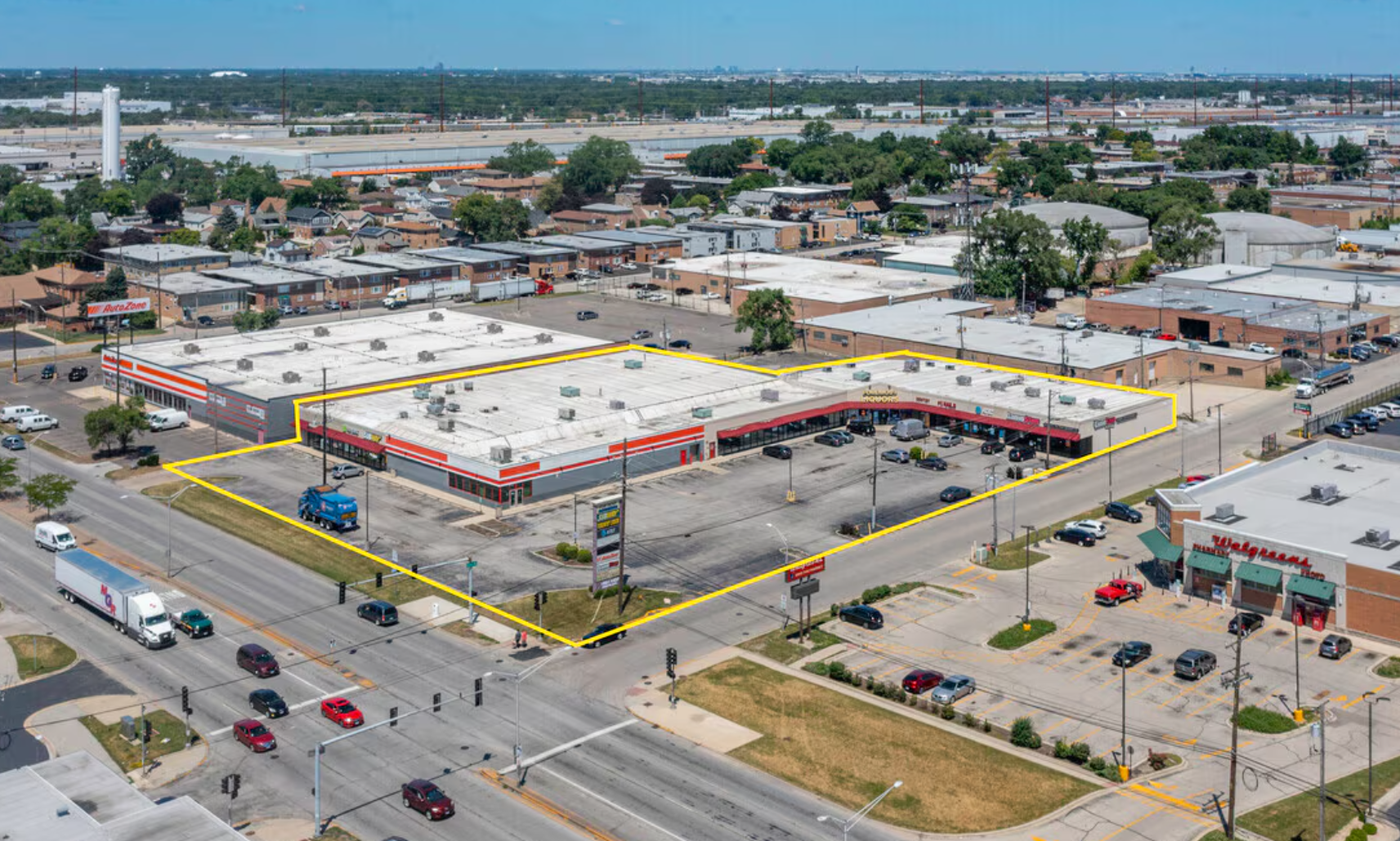 Silo Square is a multi-tenant retail center located in west suburban Melrose Park, offering approximately 42,000 square feet of space in a building renovated in 2011. The center features a strong mix of established tenants including H&R Block, Subway, #1 Nails, Hanna’s Gaming, Foremost Liquors, Alshaam Mediterranean Restaurant, and Big Cloud Vape & Tobacco, with four available suites ranging from 1,860 to 8,600 square feet. The property benefits from 277 feet of frontage along North Avenue and prominent dual-sided pylon signage at the signalized intersection of North Avenue and 15th Avenue, which sees approximately 48,000 vehicles per day. Surrounded by a dense concentration of major national retailers and shopping destinations, the center offers excellent visibility, steady traffic, and a prime opportunity for retailers seeking a presence in a high-demand commercial corridor.