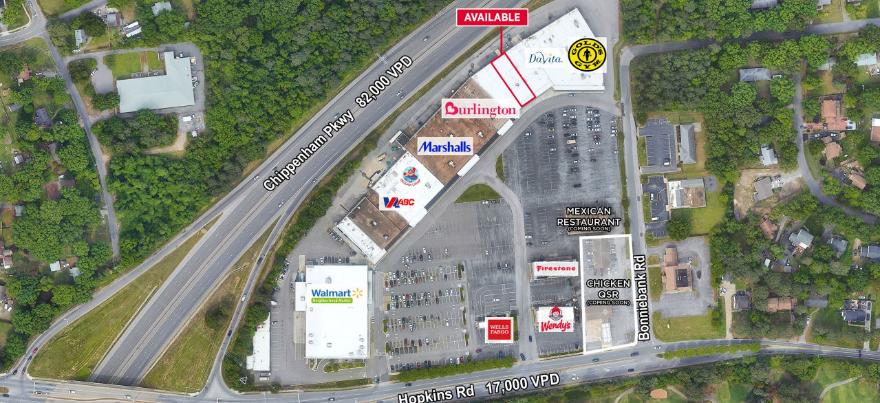 This property offers 0.66 acres with a 5,900–7,242 SF pad building with drive-thru available, plus an additional 8,964 SF of space. Anchored by Burlington, Walmart Neighborhood Market, and Gold’s Gym, the center recently underwent $1M in exterior renovations. Located within an enterprise zone, it also qualifies for a rehabilitation replacement incentive program. The site boasts excellent visibility and immediate access to Chippenham Parkway (SR 150, 82,000 VPD) via Hopkins Road (10,000 VPD), with signage opportunities along the parkway. Positioned adjacent to Meadowbrook Country Club and just minutes from I-95, the property benefits from proximity to major employers, including DuPont (3,084 employees), Phillip Morris (1,500 employees), and the U.S. Defense Supply & Virginia National Guard Joint HQ (3,300 employees), making it ideal for retail, restaurant, or service uses.
